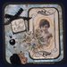 I used a Manilla tag with an embossing folder & rubbed some ink over the areas, a chipboard heart covered with crackle glaze & glitter, a pair of Swiss dot embossed wings. The little fella was coloured with Promarkers & both he & the words Fly & Escape came from Sarah's Steampunk CD.