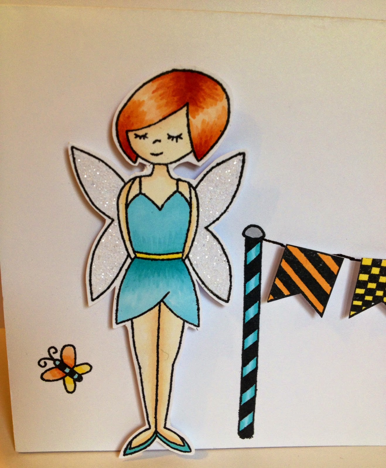 I added some colour using one of my favourite colouring mediums, Faber Castell Big Brush pens. I love these pens as once dry they're pretty permanent but while wet I can smudge them with my finger. I used two colours starting with a grey but while I liked the colour it wasn't strong enough so I turned to the blue.